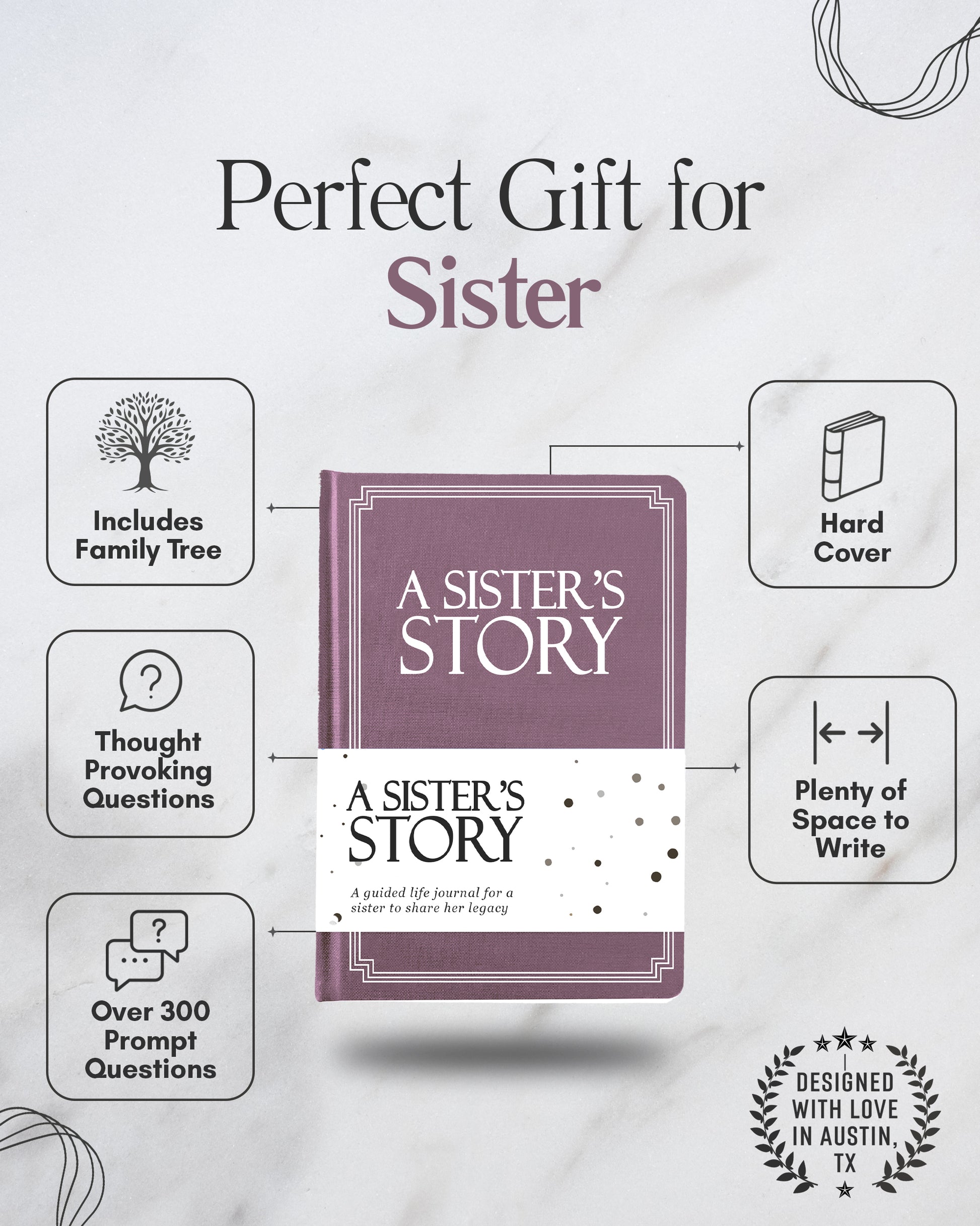 - Our guided legacy journal with prompts is a perfect gift idea for a sister. There are more than 250 fun questions to fill out, and these questions are carefully designed to help a sister share her memories and tell her life story in her own way.